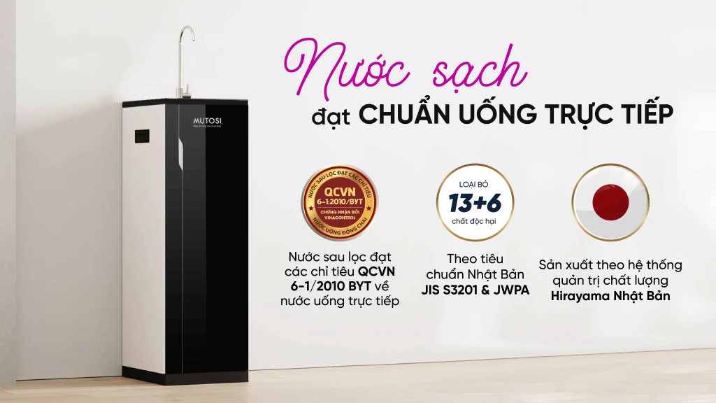 - Nước đạt chuẩn uống trực tiếp QCVN 6-1:2010/BYT