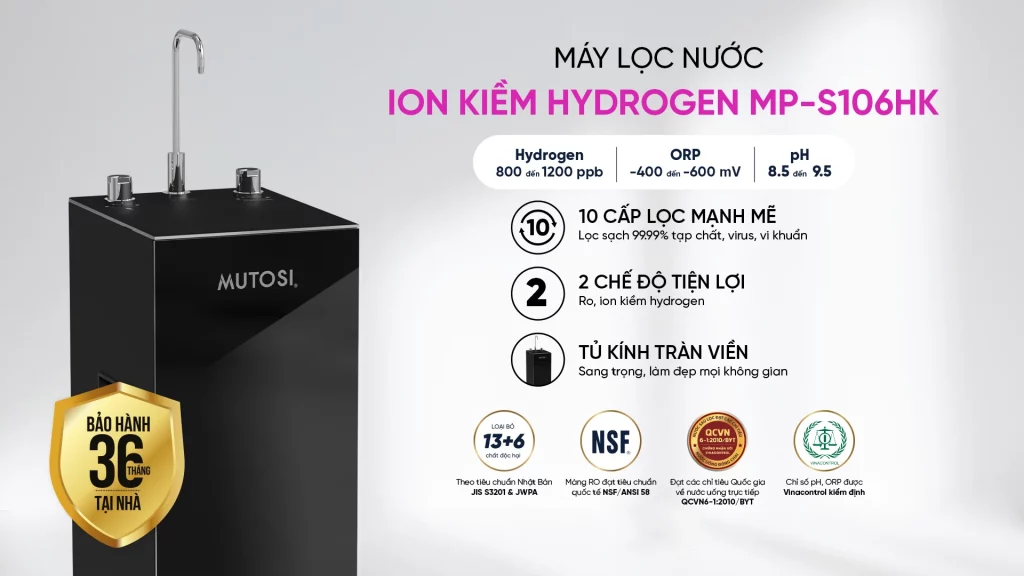 Máy lọc nước ion kiềm hydrogen Mutosi MP-S106HK – Lọc sạch chuẩn, nâng tầm sức khỏe mỗi ngày