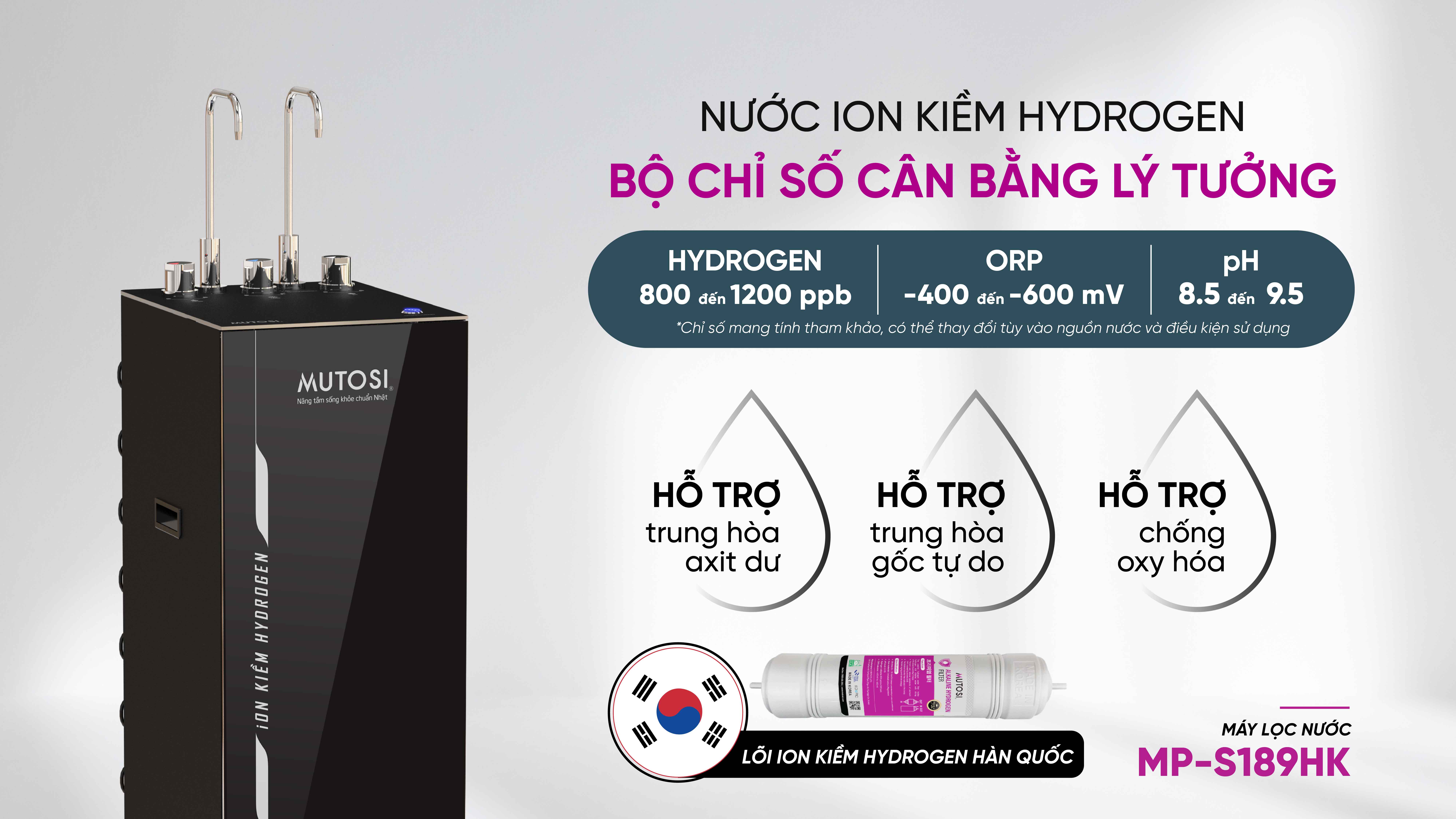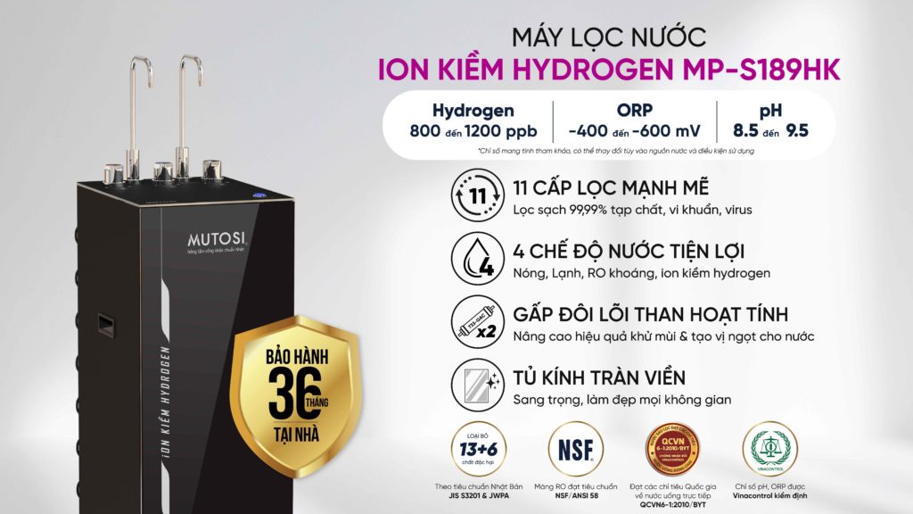 Mutosi MP-S189HK ra đời để giải quyết trọn vẹn bài toán này: lọc sạch – bổ sung khoáng – tạo nước ion kiềm hydrogen – tích hợp nóng lạnh nguội trong một thiết bị duy nhất. Một lựa chọn đúng giúp bạn không phải đánh đổi sức khỏe và sự tiện lợi.