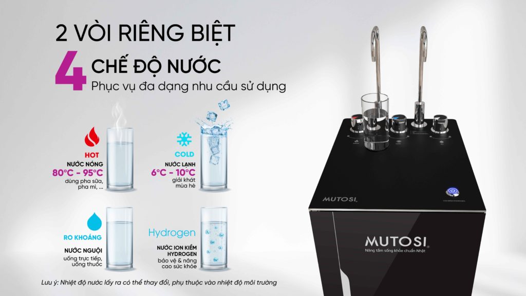 Đánh giá Máy lọc nước ion kiềm hydrogen nóng lạnh nguội Mutosi MP-S189HK