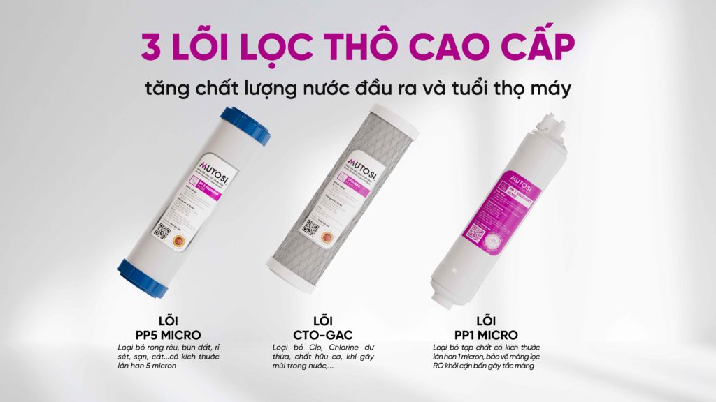 Bộ 3 lõi lọc thô không chỉ giúp nước đầu vào sạch hơn mà còn đóng vai trò “lá chắn bảo vệ” cho toàn bộ hệ thống, đảm bảo máy vận hành ổn định và duy trì chất lượng nước đầu ra lâu dài.