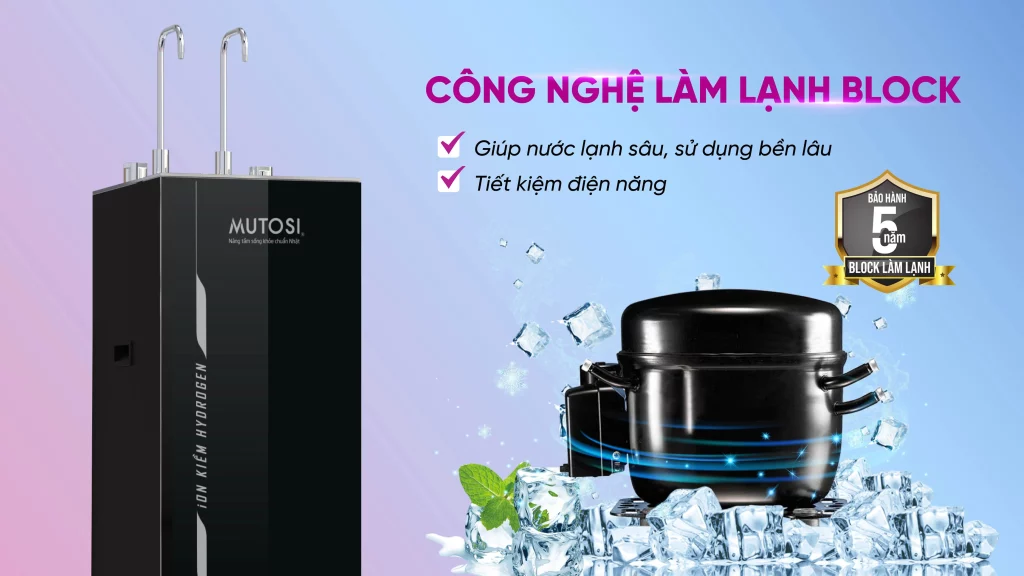 Khác với nhiều máy lọc nước dùng chip điện tử, Mutosi MP-S199HIK sử dụng Block làm lạnh chuyên dụng.