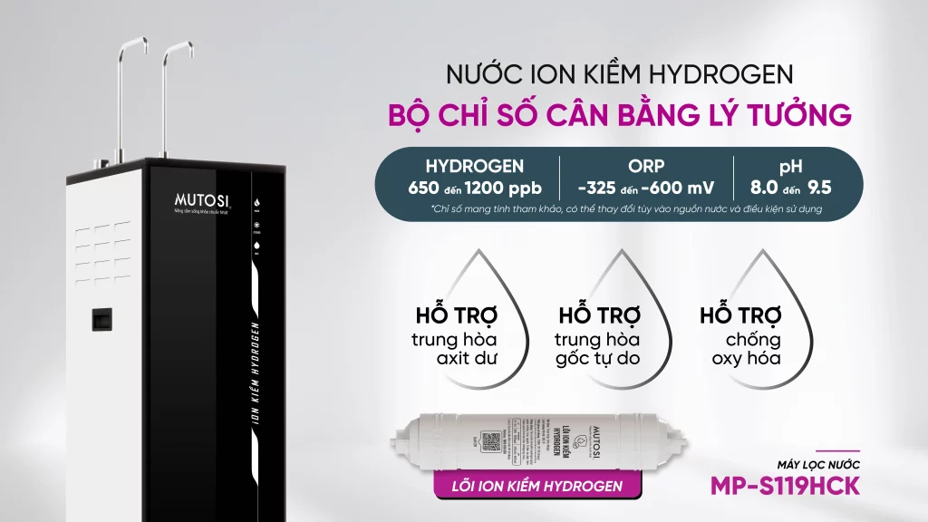 Với lõi tạo ion kiềm hydrogen tích hợp, Mutosi MP-S119HCK tạo ra nguồn nước có chỉ số ổn định và duy trì lâu dài: