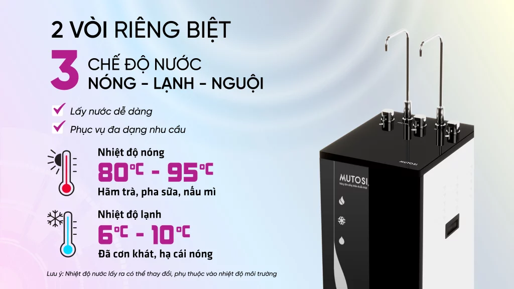 Lưu ý: Nhiệt độ nước thực tế có thể thay đổi tùy theo điều kiện môi trường và thời điểm sử dụng.