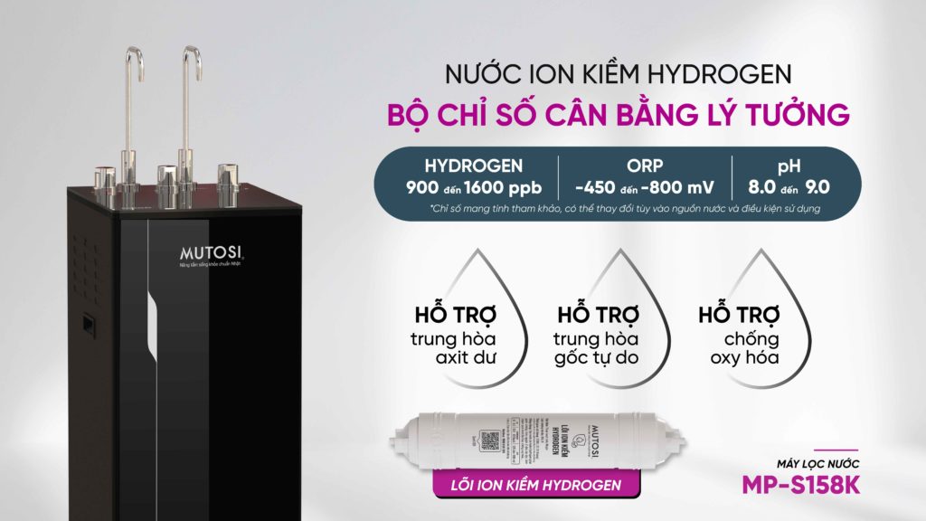 Với lõi ion kiềm Hydrogen tích hợp, Mutosi MP-S158K tạo ra nguồn nước có chỉ số lý tưởng, giúp người dùng yên tâm sử dụng lâu dài:
